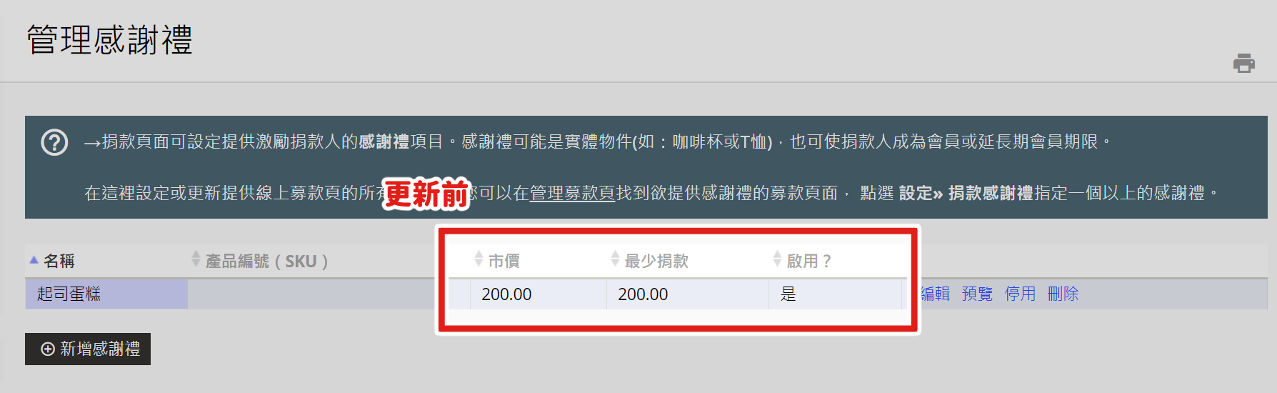 🔸 「感謝禮庫存管理」功能更新,捐款贈品不再「超賣」!