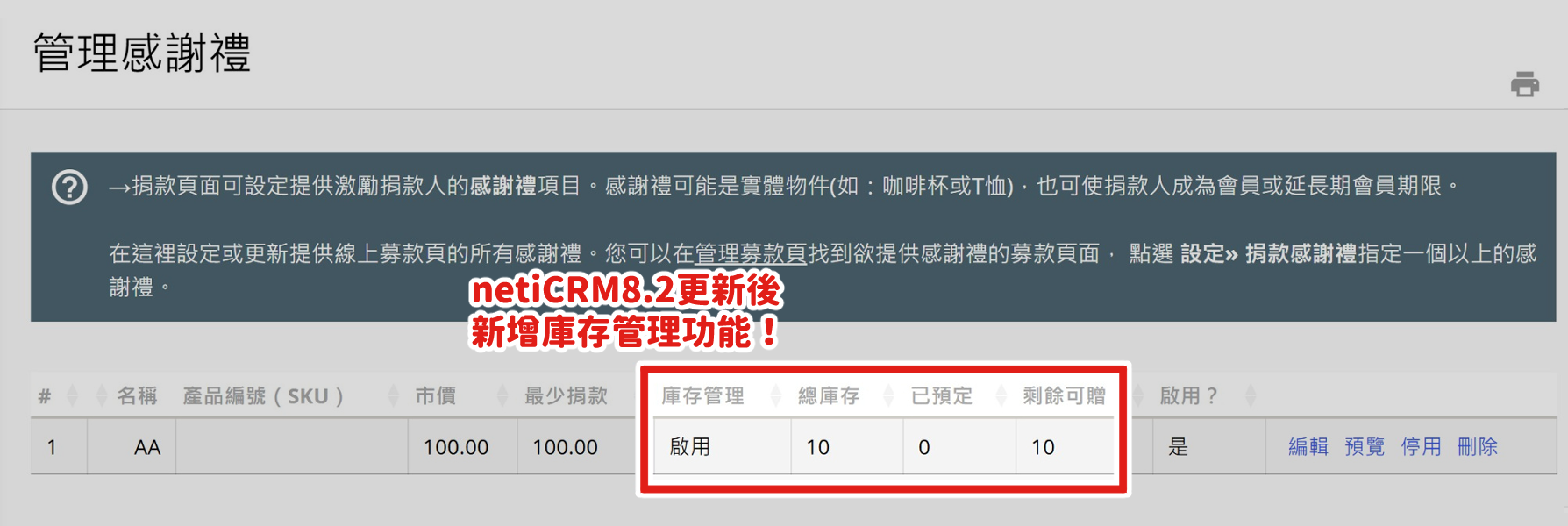 netiCRM 教學手冊〈管理感謝禮品—設定感謝禮(三):庫存管理〉