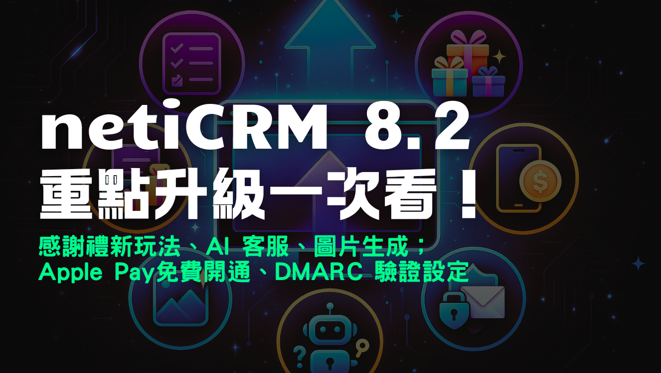 netiCRM 8.2 不只是版本更新,而是一場從金流到捐款禮品、從 AI 協作到資安防護,讓日常工作更順暢、讓每次與支持者互動更貼心的升級。