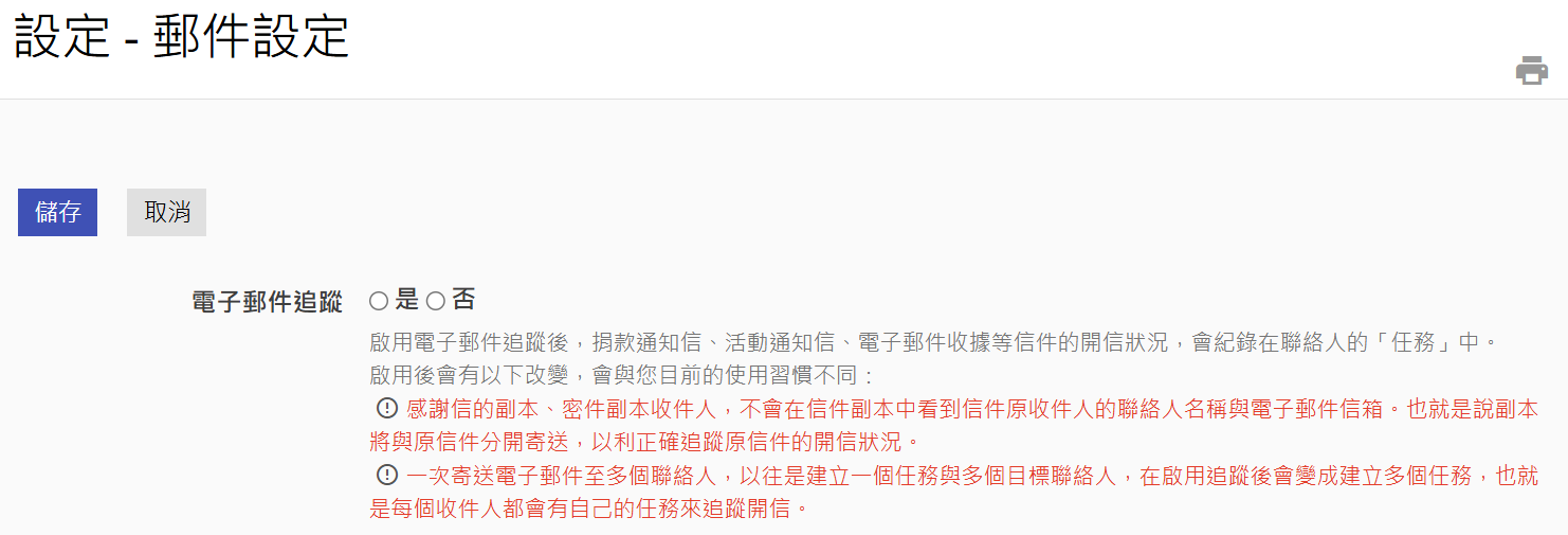 - 啟用此功能後,才能在「查看任務紀錄」中,看到「電子郵件追蹤」的結果。